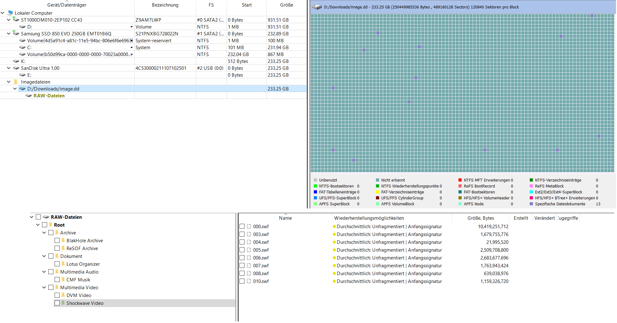 Photorec ebenso (swf files in GB Größe)