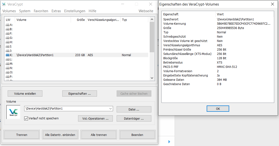 Vorgestern wollte ich den Stick wieder einbinden, allerdings wurde das Passwort nicht angenommen. Nach einigen Versuchen kam die Meldung, dass VeraCrypt ein Problem mit den Volume-Kopfdaten festgestellt hat und vorschlägt die eingebetteten Volume-Kopfdaten wiederherzustellen.