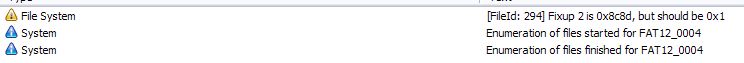 An MFT record (the one which contains information about a particular file) has some self-validation values. One of them is known as 'fixup'. So if an MFT record is broken, the following warnings can appear: