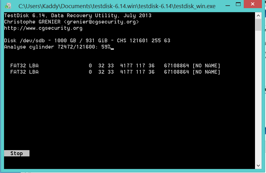 Testdisk erkennt auch meine externe Festplatte mit seinem Namen Intenso und auch die 1000 GB. Ebenfalls steht da was von 931 GB und diese waren auf meiner externen Festplatte noch frei. Der Rest war von meinen persönlichen Daten belegt. Mir fehlen jetzt also 69 GB äußerst wichtige Daten.