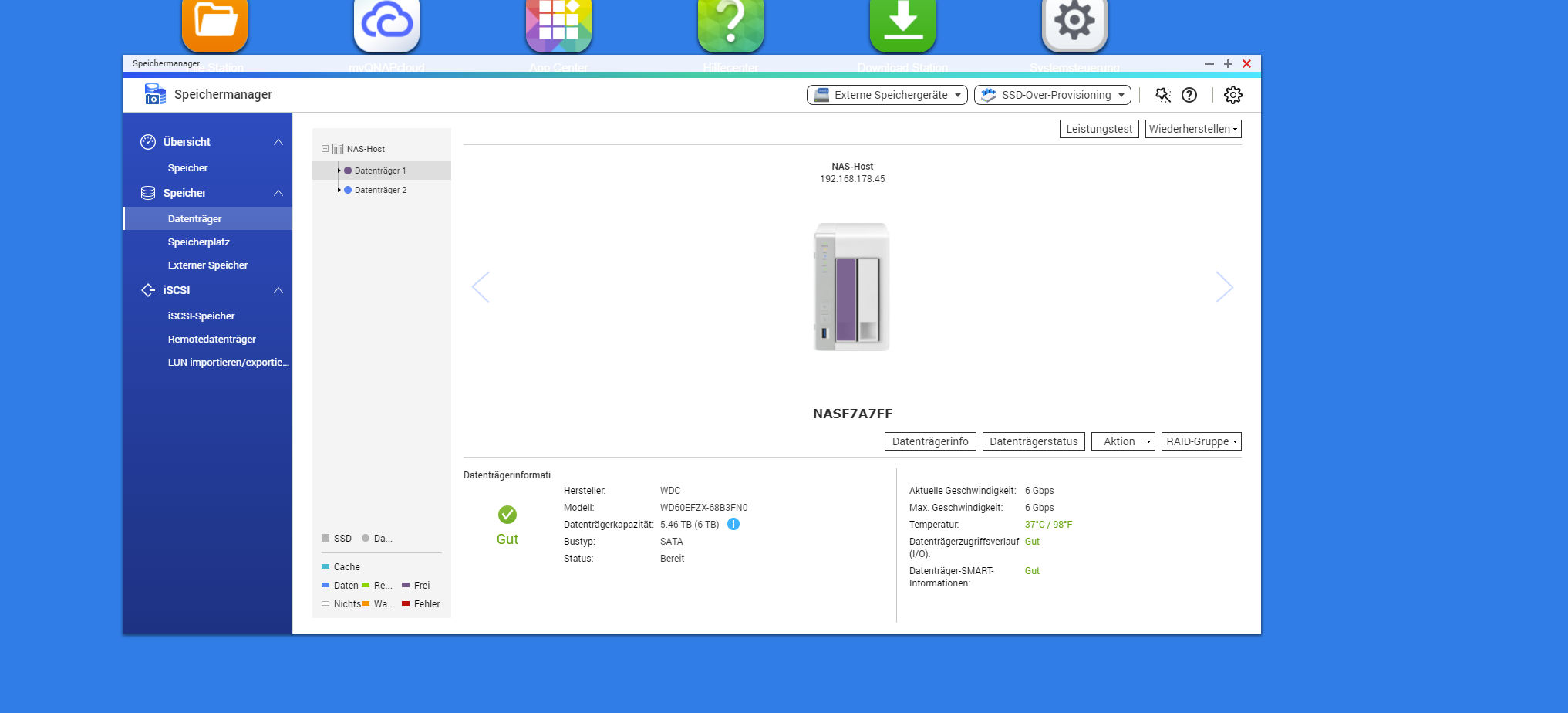 Beim ersten Screenshot sieht man nur die Zweitplatte, eine WD 6TB Blue.