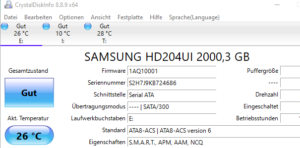 Kein Riesenproblem im Normalbetrieb – Maschine läuft anstandslos und fehlerfrei – halt ärgerlich, wenn sich der Zustand der Datenträger nicht erfassen lässt.