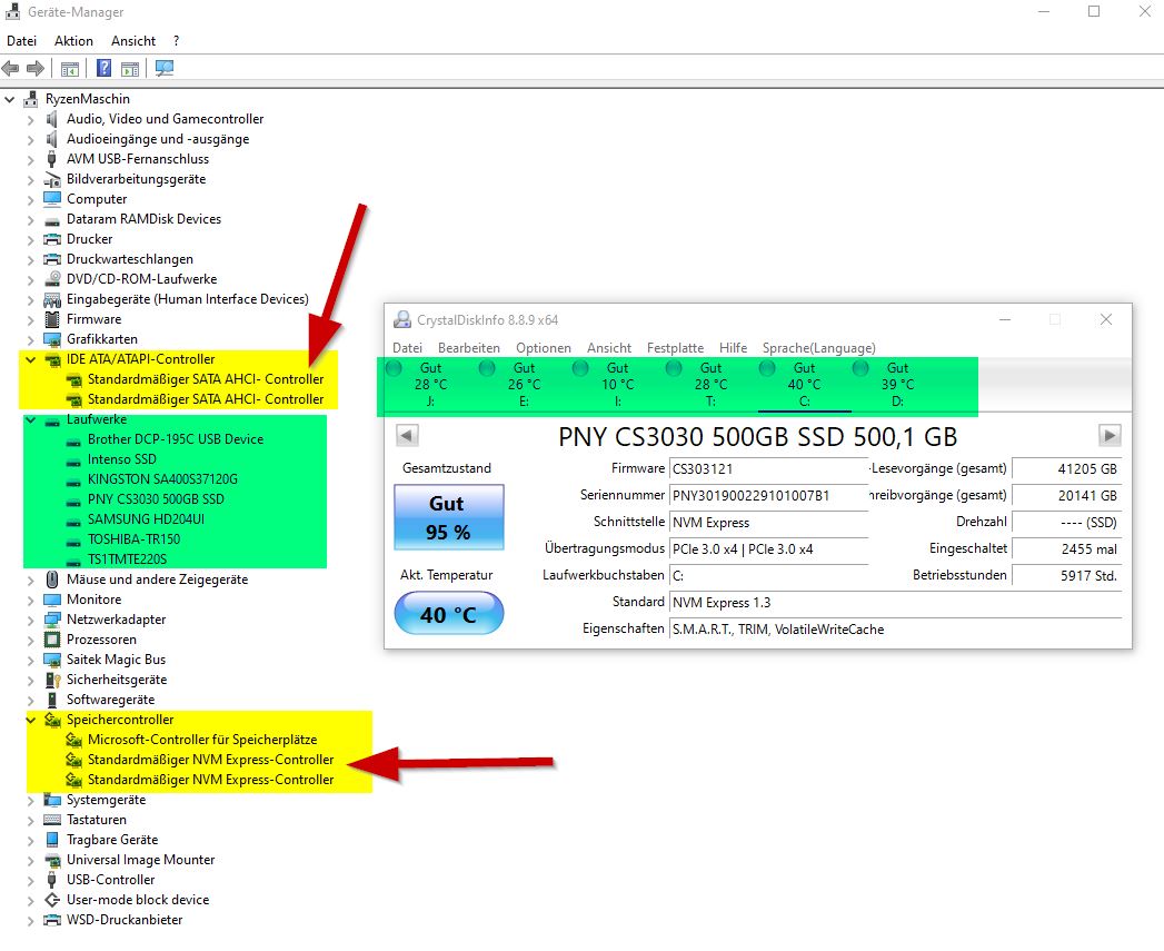 hatte vor einiger Zeit mal eine Frage zu CrystalDiskInfo, das mir kein einziges Laufwerk anzeigt.