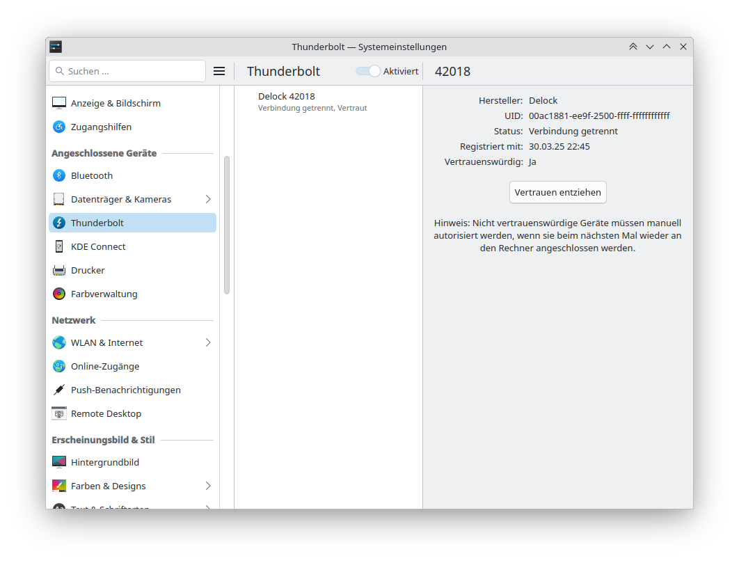 # boltctl list -> zeigt nichts an