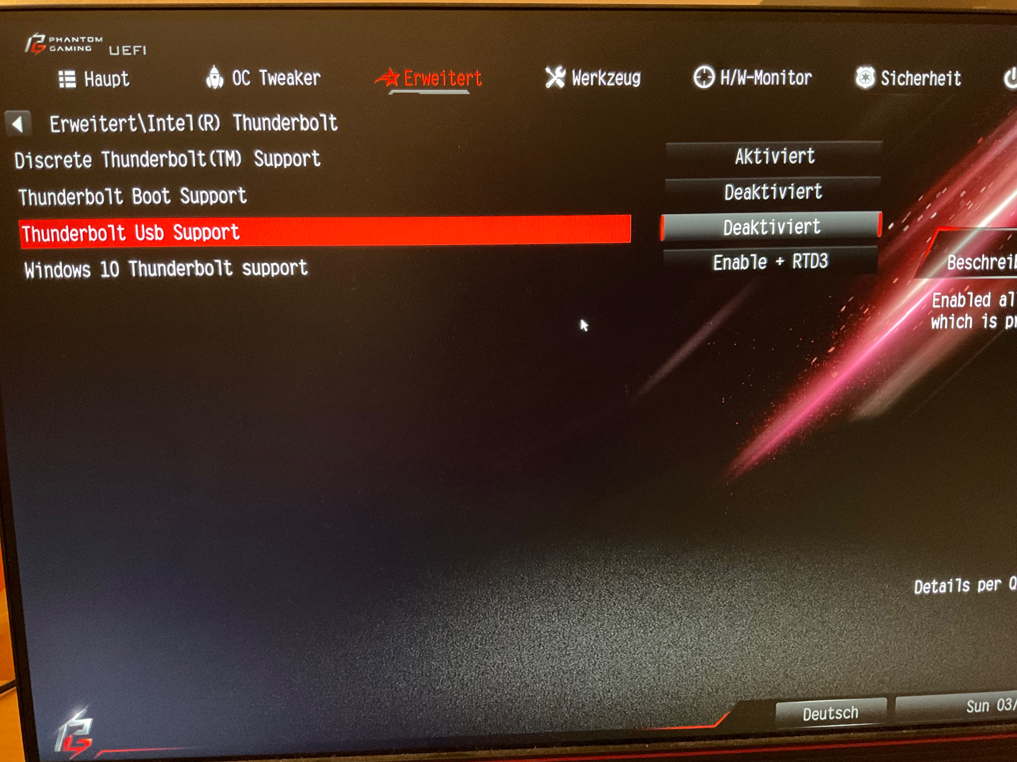 Wieso ist Thunderbolt Support deaktiviert?