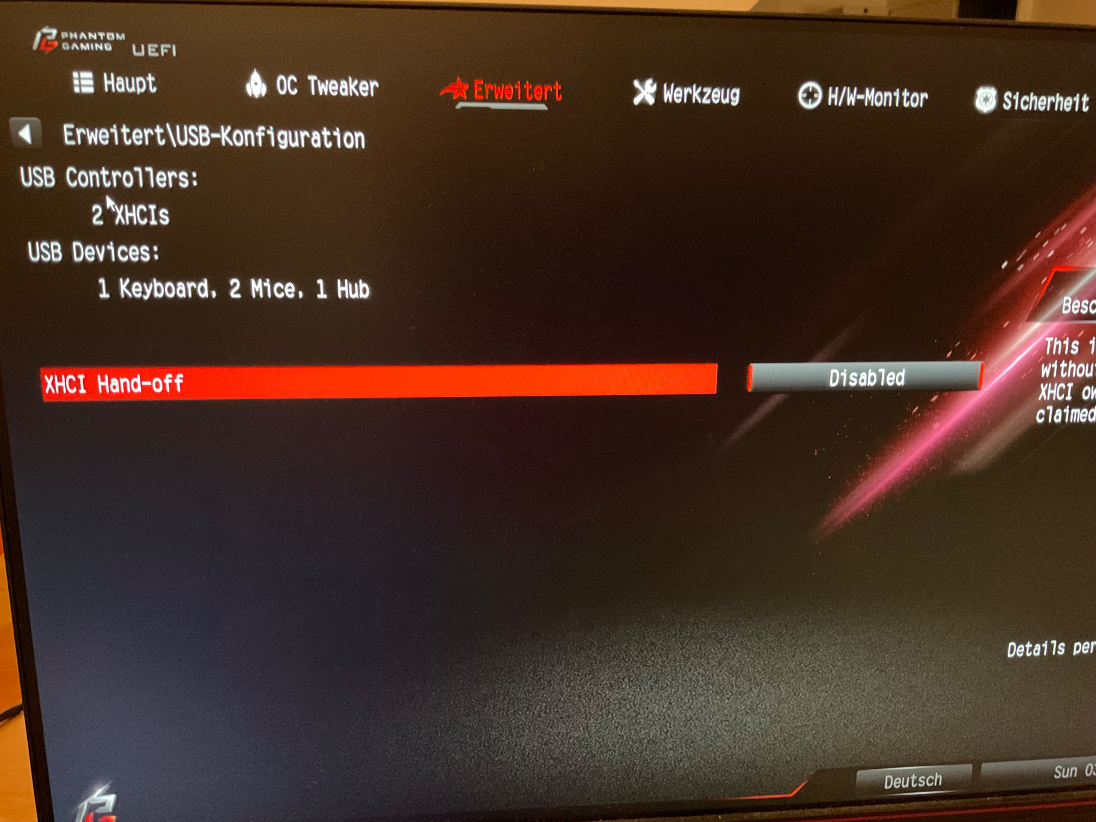 • XHCI Hand-Off auf „enabled“ setzen hat nichts gebracht.
