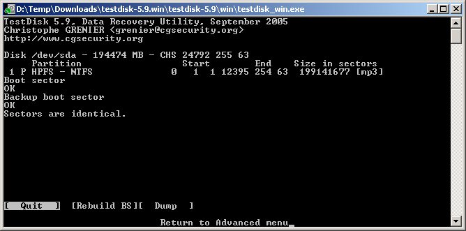 Nach dem durchlesen einiger anderer Themen hier im Forum habe ich mir TestDisk 5.9 heruntergeladen und laufen lassen. Die Screens der einzelnen Stadien in denen z.B. Fiona meist Feedback gefordert hat sind angehängt. Demnach sind wohl die Bootsectoren identisch und es wird kein Virus sein - wüsste auch nicht woher.