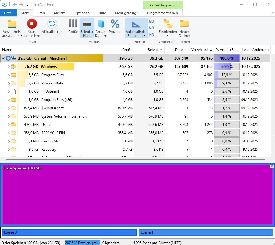 die Windows 10 Datenträger Speicheranzeige zeigt mir nach dem heutigen qualitativen Update 12 GB weniger an wo sind die hin
