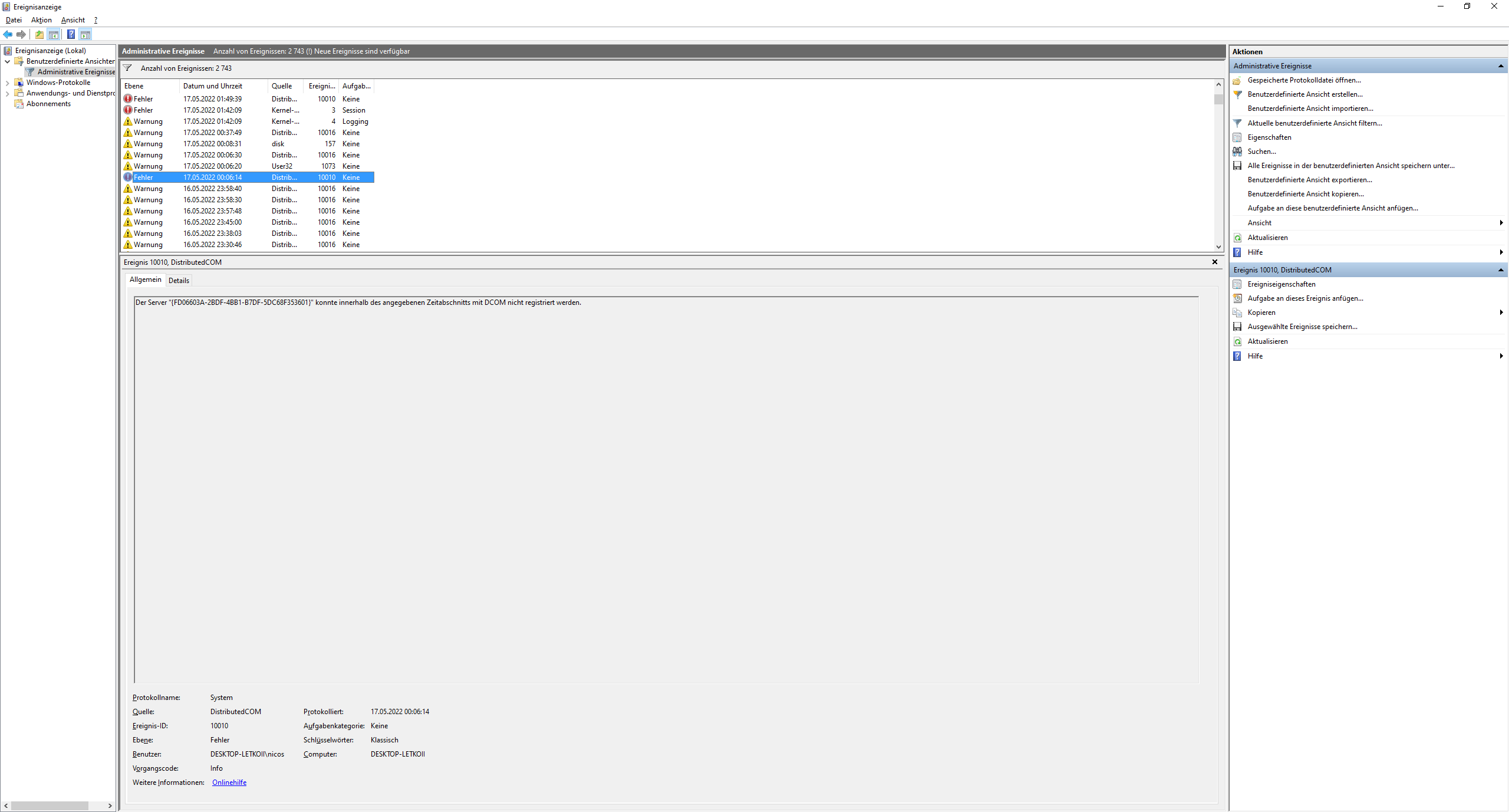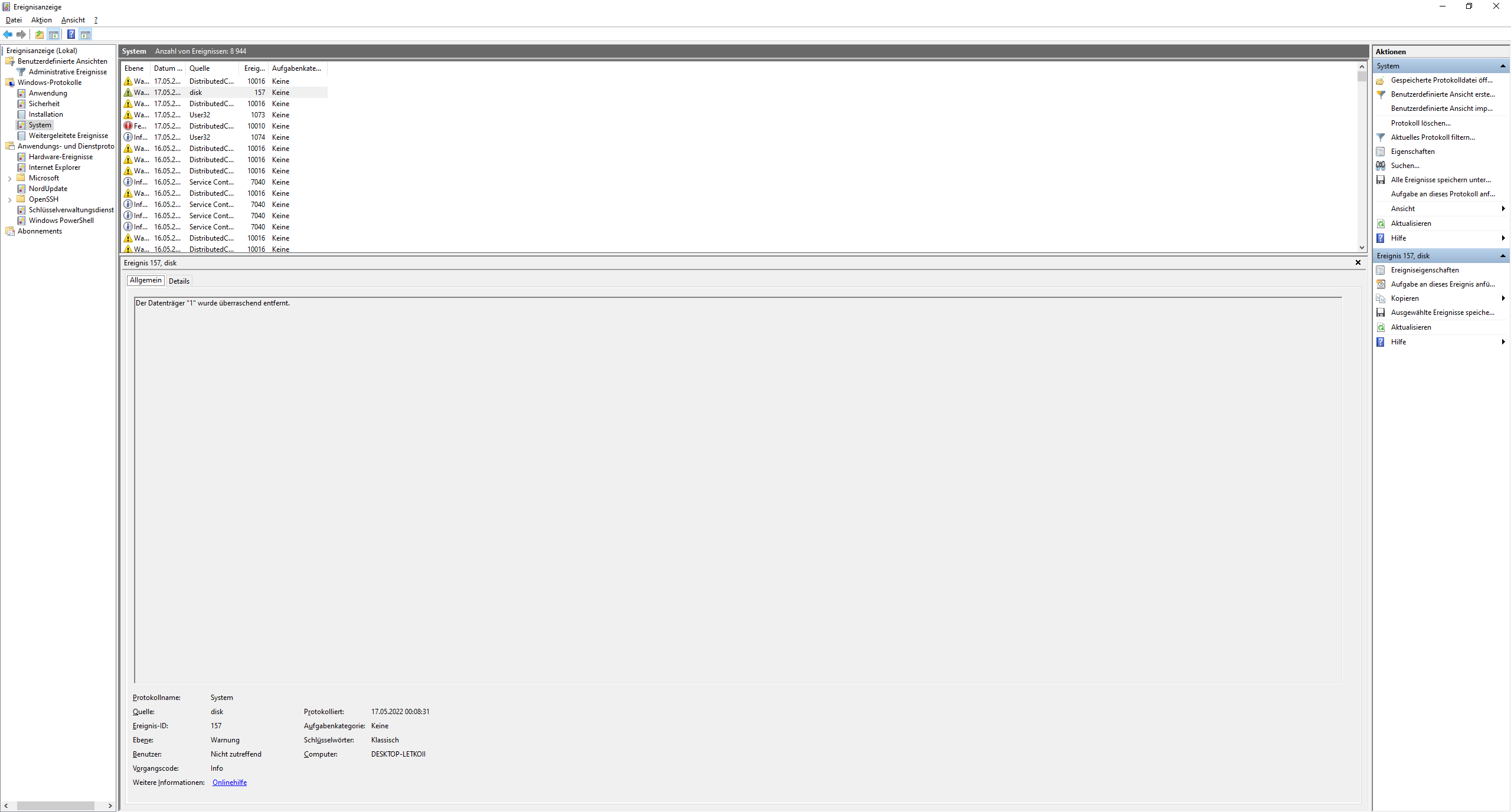 Fehler tritt trotzdem noch auf hier ein Bild was ich direkt nach crash von der Ereignisanzeige entnommen hab