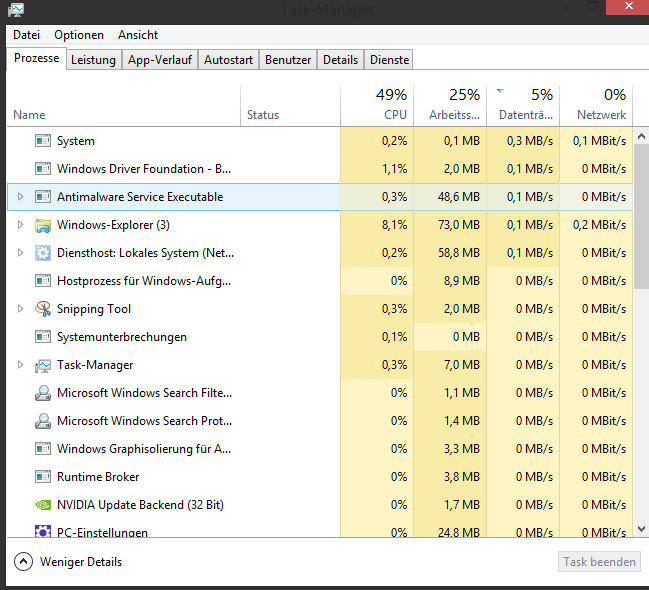 Nun habe ich nochmal mein System zurückgesetzt (dieses mal mit persönlichen Daten behalten) und die Auslastung ist wieder normal. Das kann doch an sich nicht sein, dass mein System in so kurzer Zeit Probleme aufweist, obwohl ich kaum etwas auf dem Laptop unternommen habe. Virencheck hatte ich bereits davor durchgeführt und auch dort gab es keine Funde. Nun befürchte ich, dass ich wieder so etwas in kurzer Zeit begegnen werde.