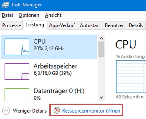 Aufgefallen ist mir, dass im TASK-Manager die Auslastung des Datenträgers permanent bei 100% liegt, obwohl keine schreibintensive oder leseintensive Prozesse liefen. Ich habe die Festplatte auf Fehler überprüft, allerdings keine Probleme gefunden.