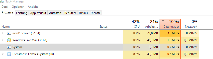 Mein Rechner ist öfters nach dem Starten ewig langsam, was wohl an der Datenträgerauslastung liegt (s.unten). Es sind unterschiedliche Prozesse, die zu dem Problem führen.