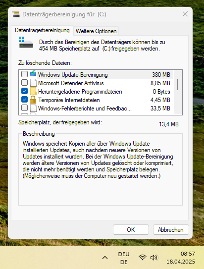 Und ich habe in der Zwischenzeit schon öfter die Datenträgerbereinigung drüberlaufen lassen.