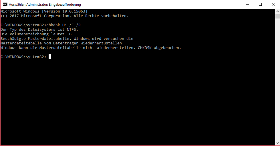 chkdsk habe ich ausgeführt mit folgendem Ergebnis: