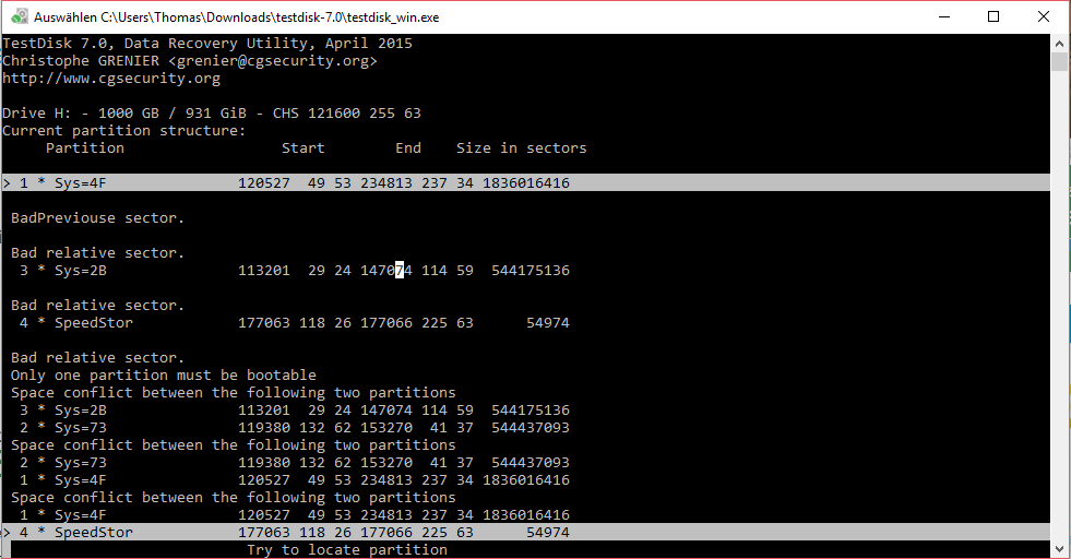 testdisk Analyse habe ich gestartet: