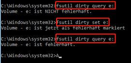 Ich hab da was über fsutil und Dirty bit gelesen, der sagt Volume C ist Fehlerhaft, hab deswegen nichts weiter unternommen (Wegen unwissenheit, nicht weil ich nicht will dass C repariert wird