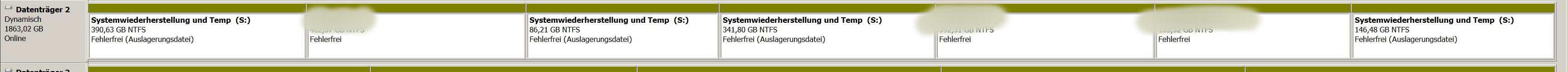 Durch diverse Änderungen an der Grösse von Partitionen sieht meine Datenträgerverwaltung bei zwei Datenträgern nicht schön aus.