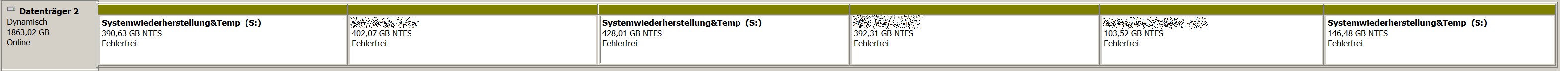 Wie bekomme ich es hin dass die Laufwerke wieder als eines angezeigt werden und nicht gesplittet in vier Teile wie auf dem Bild ??