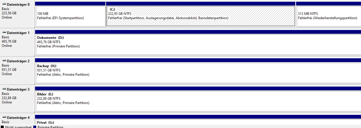 Hier kann dir womöglich schon wieder ein Fehler passiert sein, da du formatiert hast,Hellblau schrieb:Windows 10 Pro 20H2 im UEFI-Modus neu installiert (vorher die Partition gelöscht und formatiert, keinerlei Daten übernommen)