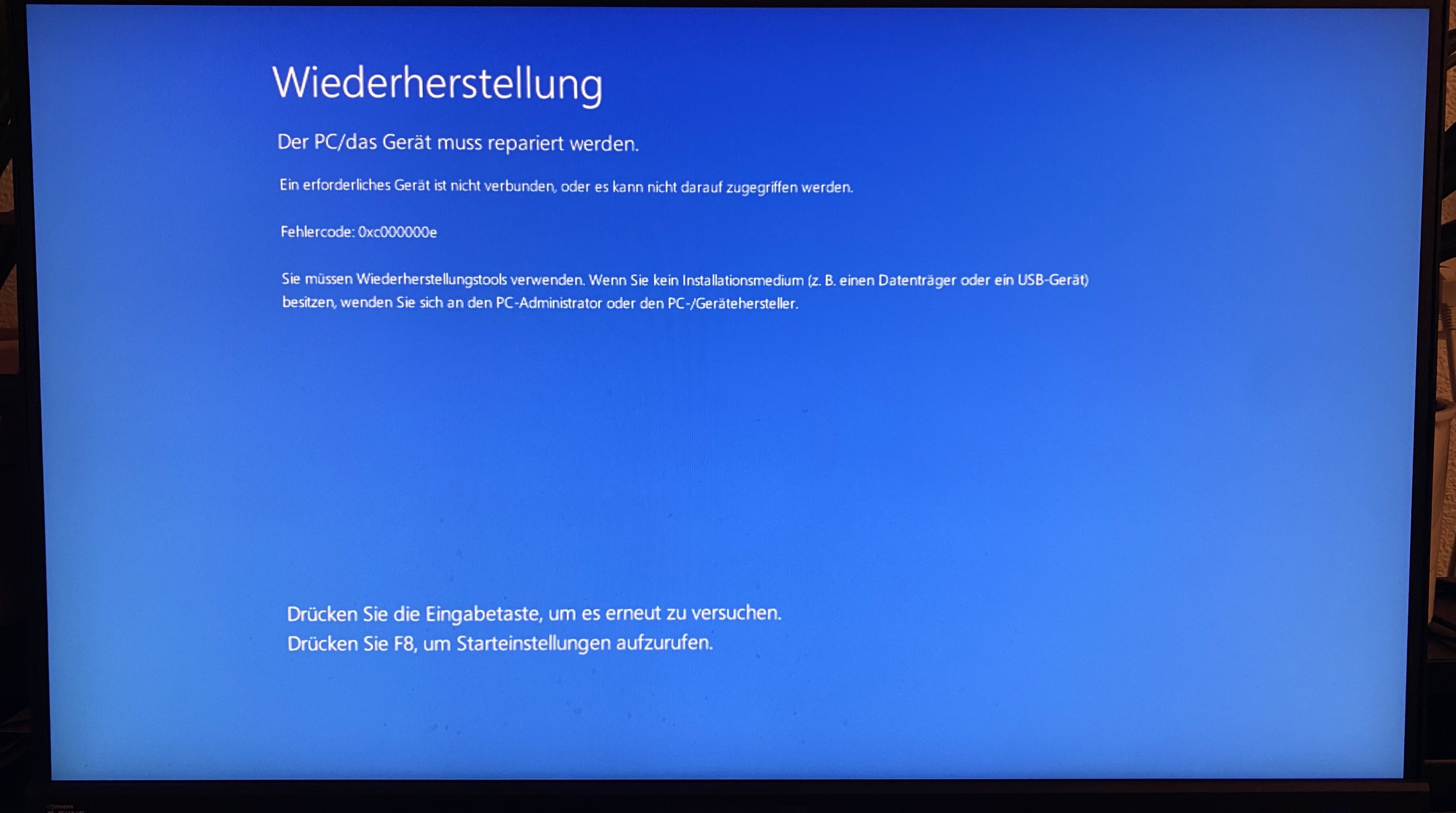 Blauer Bildschirm, wo man mit F8 oder Enter weiterkommen soll aber einfach steht, dass kein Betriebssystem installiert sein soll oder so. Müsste ich nochmal probieren und Foto machenGiggity schrieb:Was kommt für eine Fehlermeldung?