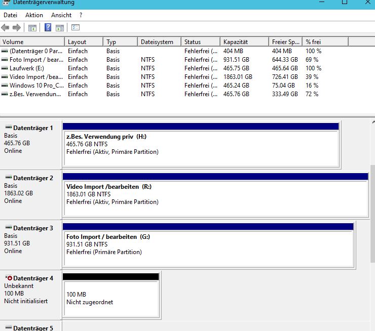 nach Aufruf meiner Datenträgerverwaltung wird folgendes angezeigt