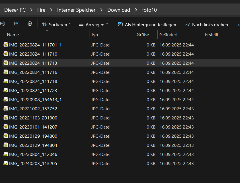 Wie dem auch sei, der Transfer via USB hat mir leider lauter 0 KB Dateien geliefert.