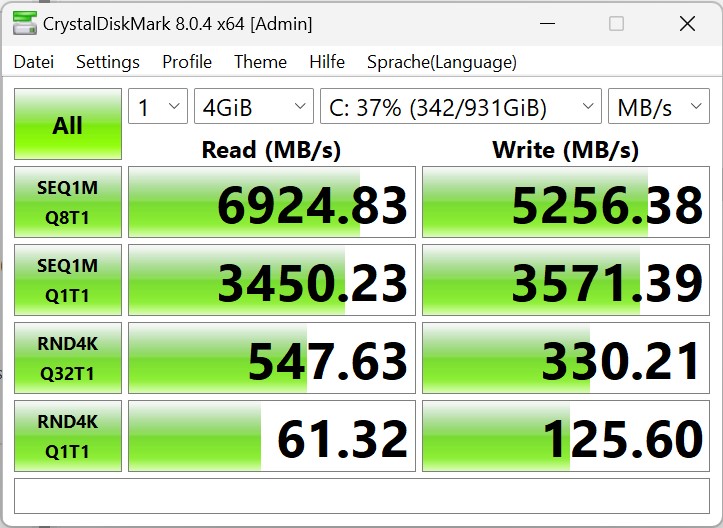 System ist ein Lenovo Legion 5 Pro mit AMD Ryzen 7 6800H, 32GB DDR5, einer WD850 Black NVME als Systemlaufwerk und einer von Lenovo bereits verbauten Samsung NVME, beide angebunden an PCIe 4.0. x4.