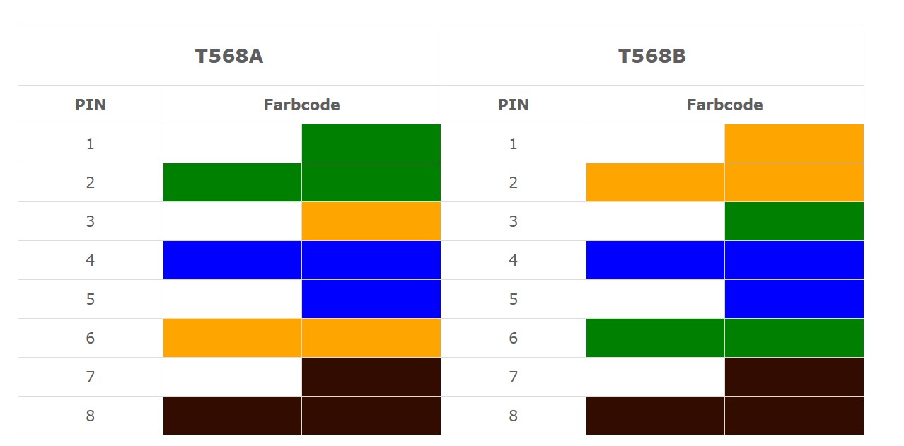 Das Patchportgehäuse ist wie gesagt gerade nicht montiert. Die Schnarchnasen die damals die Kabel verlegt haben, haben diese sehr knapp bemessen, so das es ein elendes Gefummel wäre, das die Adern in die Stecker mit Gehäuse zu montieren, weshalb es es erst einmal so versucht wurde.