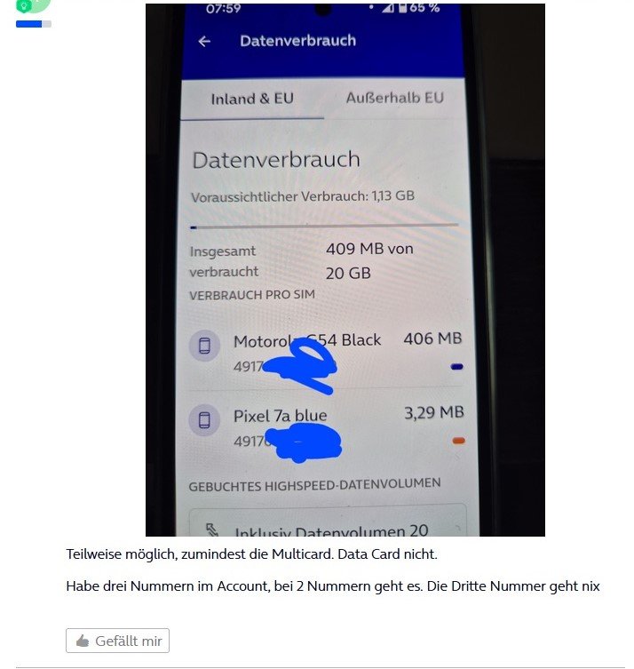 Ich habe somit keinen Überblick mehr über den Datenverbrauch der einzelnen SIMs. In der monatlichen Rechnung sehe ich aber immerhin den Gesamtverbrauch. Das ist die einzige Möglichkeit dahingehend.