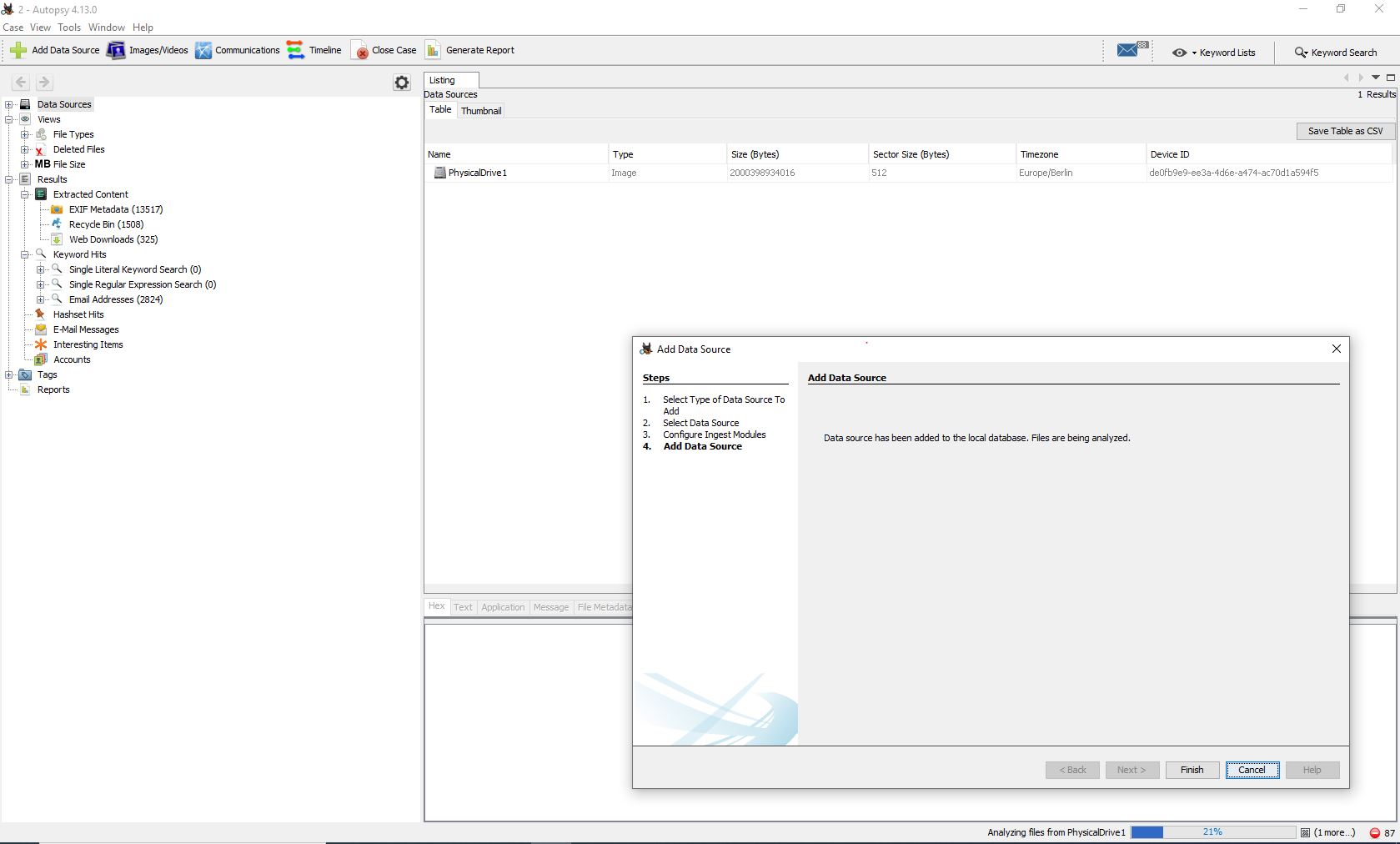 Ich habe gestern den Vorgang abgebrochen weil Autopsy hÀngen blieb und wieder neugestartet.