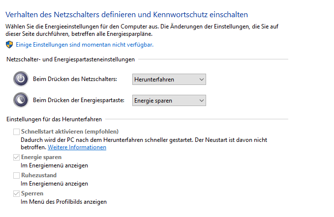 - Energieoptionen geändert (war ausbalanciert, jetzt Höchstleistung)