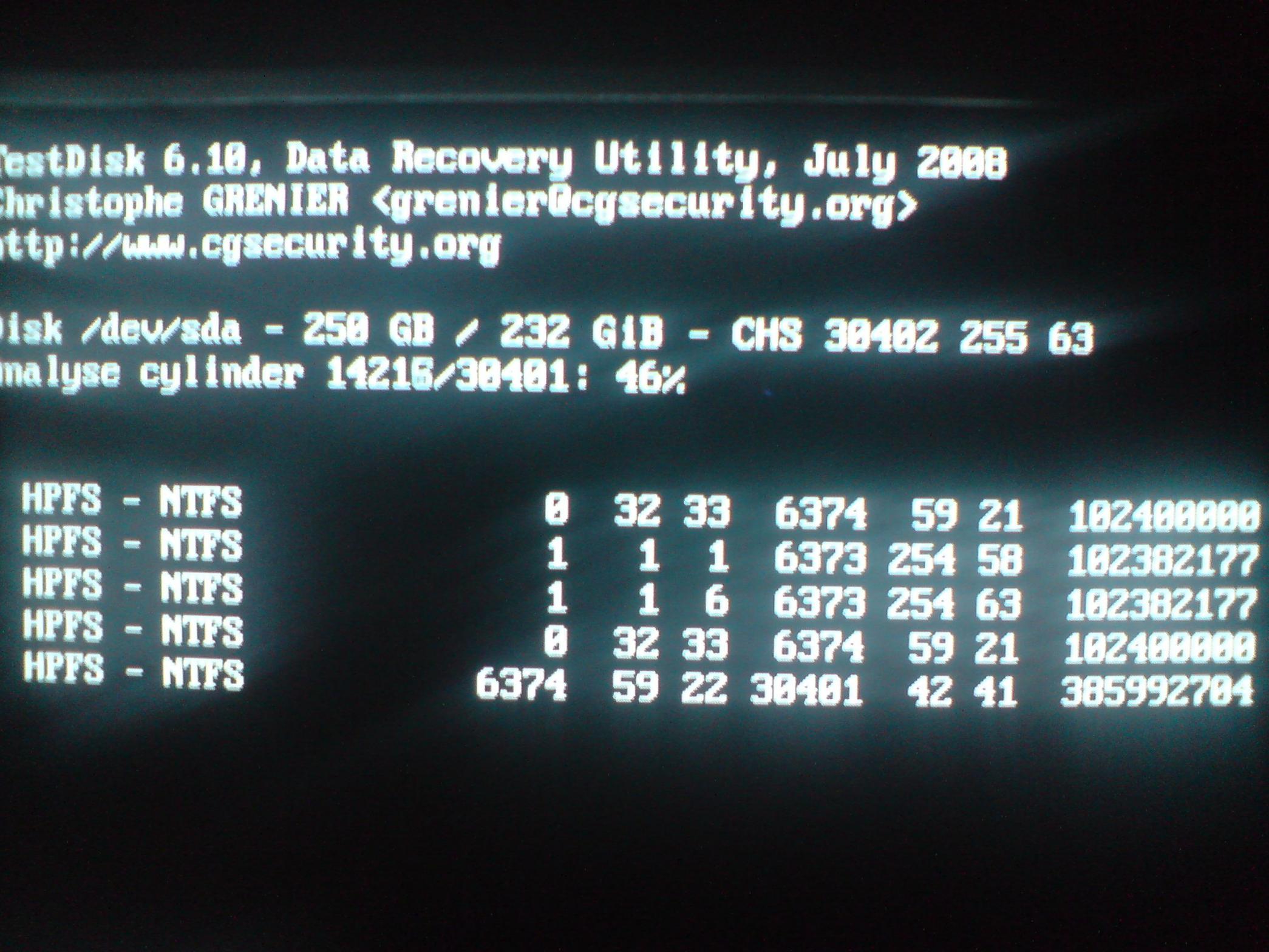 Was ich noch vergessen habe zu erwähnen ist das wärend des "Analyse cylinder" eine Partition mehr erscheint (habe sie mit rot markiert) wie auf dem Bild unten, die jedoch verschwindet nach dem 100 % Tiefen Suchdurchlauf.