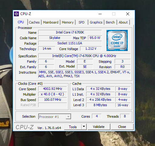 Skylake i7-6700k nicht übertatet, auch GigaByte GA-Z170X-UD3 Board. 16GB Kingston HyperX DDR4-2666, Palit GeForce 1070 GameRock Premium, Windows 10 Pro.
