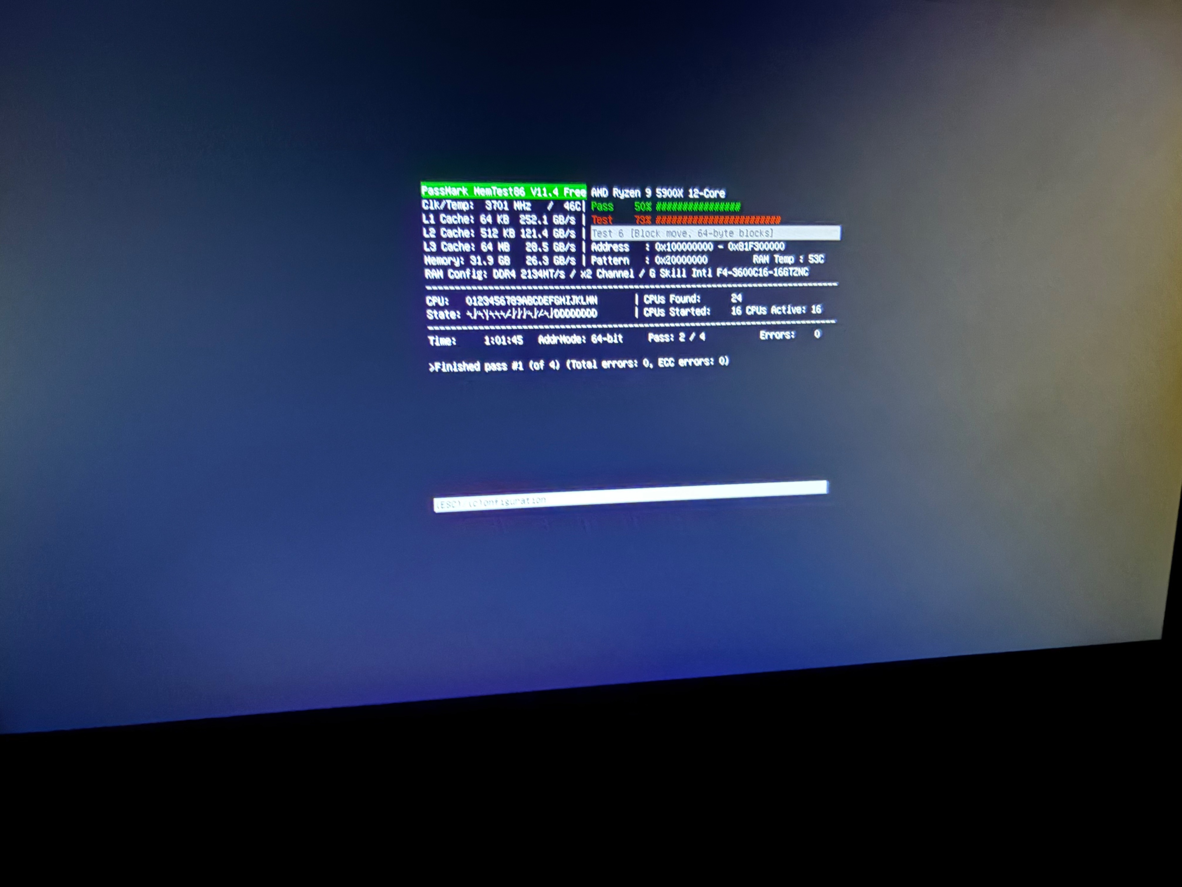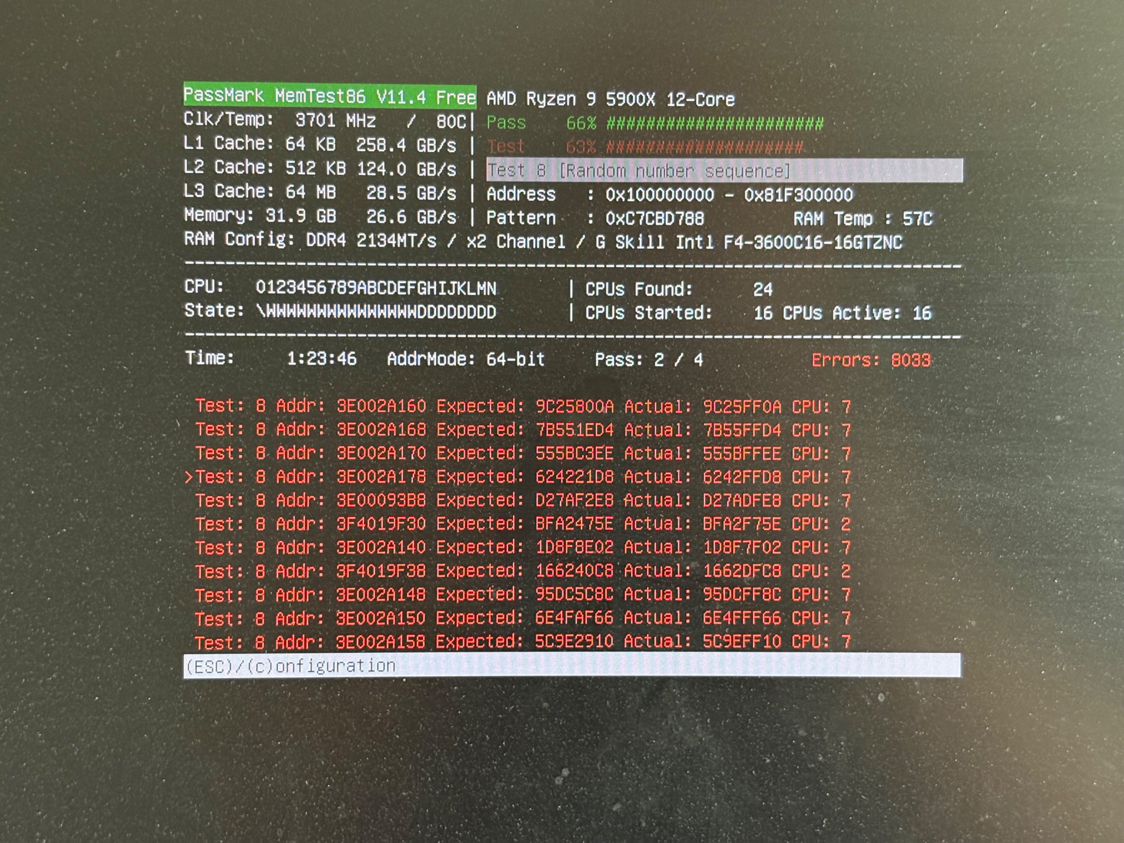@AS2008 treten die Speicherfehler mit memtest86 immer sofort, oder nach wenigen Sekunden auf? Oder musst du da 10 ... 20 min., oder gar mehrere Durchläufe abwarten, bis es "rot" wird?