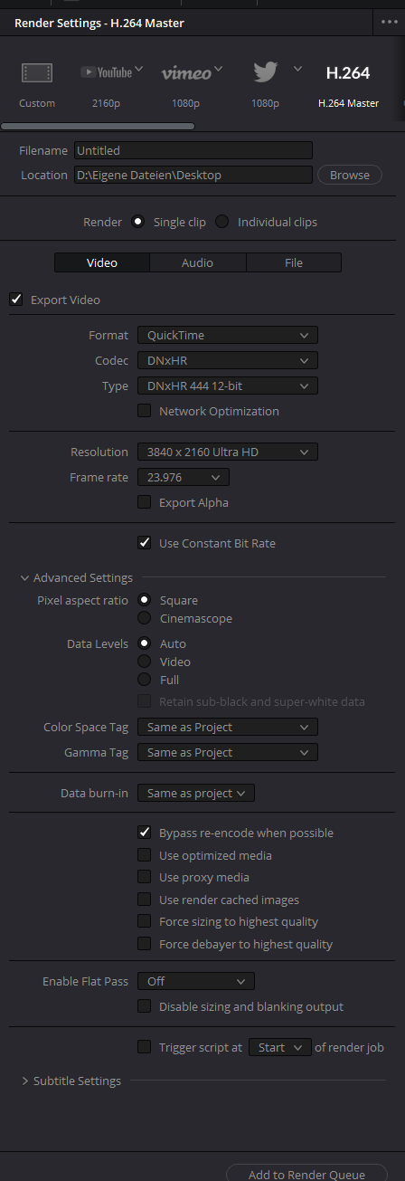 Ich habe schon Sehr viele Kombinationen bis hin zu DNXHR getestet und gerendert.