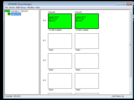 Lt. Handbuch muss im Gerätemanager wie in der Systemsteuerung folgender Eintrag vorhanden sein "Silicon Image SATA Controllers". Die sind auch vorhanden jedoch unter dem Eintrag direkt in der Systemsteuerung sind keinerlei Daten abrufbar, alle Felder sind leer. Hingegen direkt im Gerätemanager kann man die Details zum RAID einsehen.