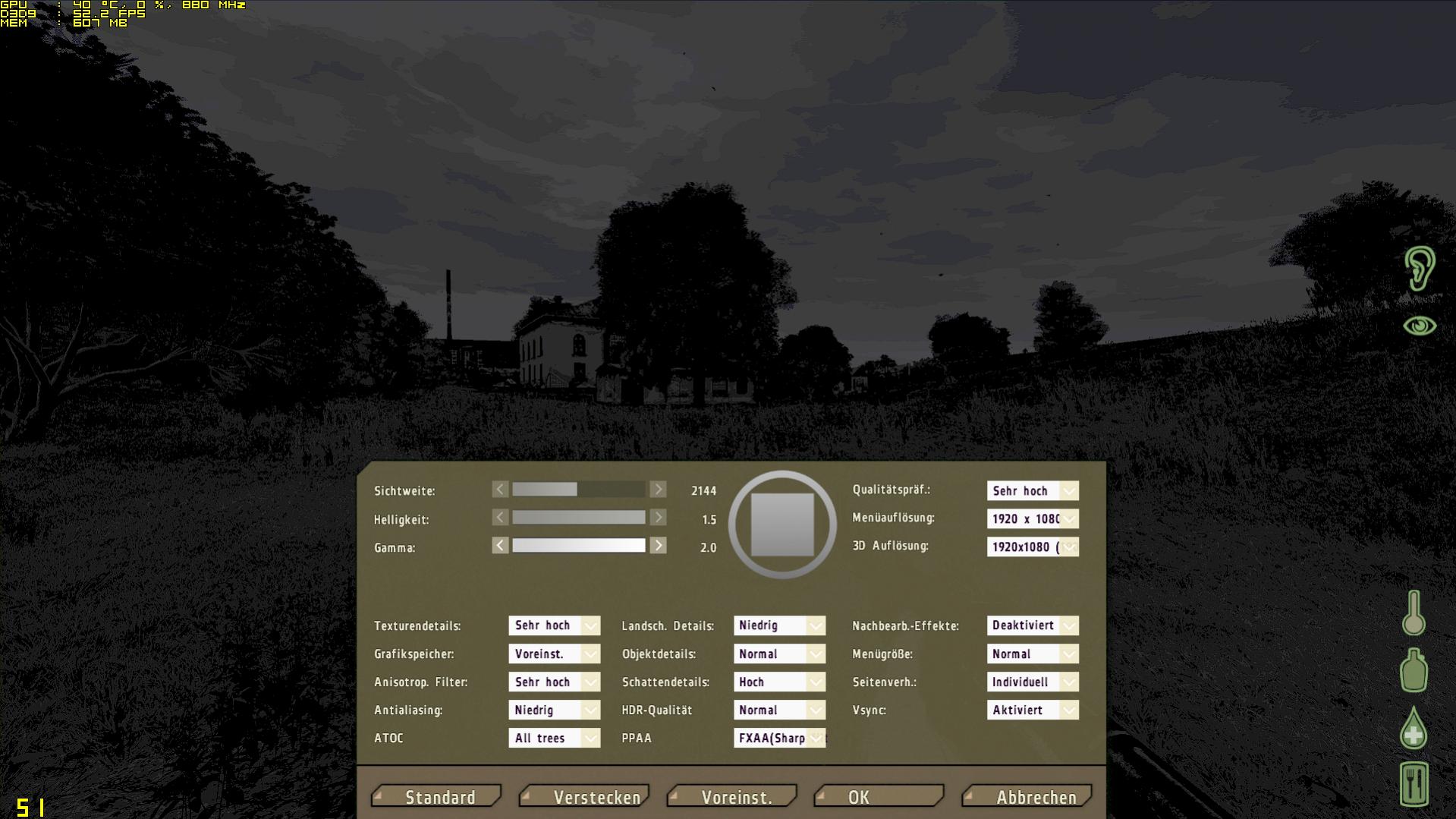 Bei deiner Hardware sollte da eigentlich mehr drin sein. Ich Spiele bei 60-90Fps Hardware Siehe meine Signatur.