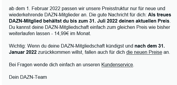 Mein 149 Euro Jahresabonnement läuft im Januar aus. Mail erhalten ich kann für 299 weiter jährlich DAZN schauen. 🤣🤣