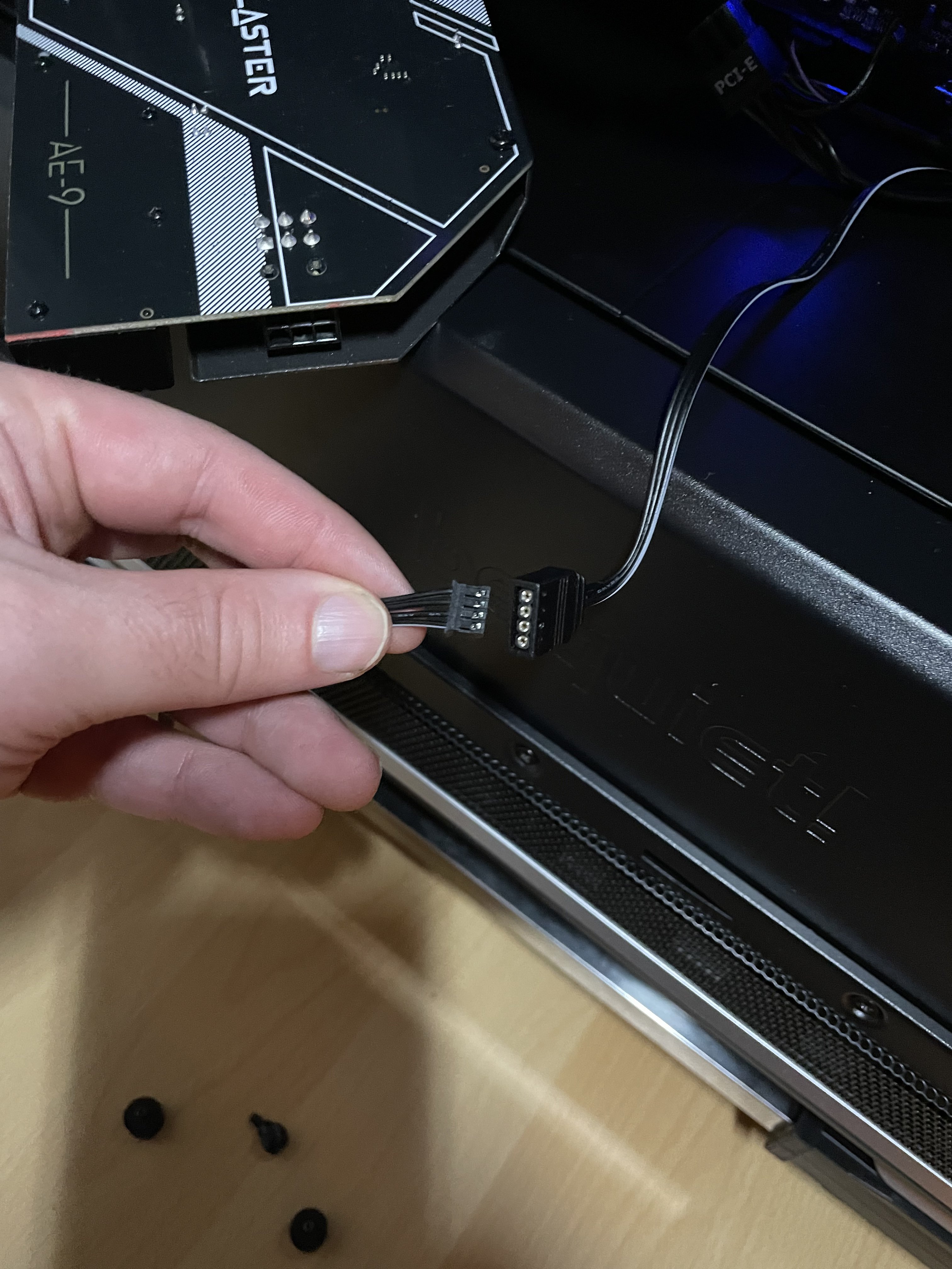 Ähhm, bin jetzt endlich dazu gekommen, der Stecker ist allerdings viel zu klein am anderen Ende um in einen 4 Pin RGB Slot zu passen.