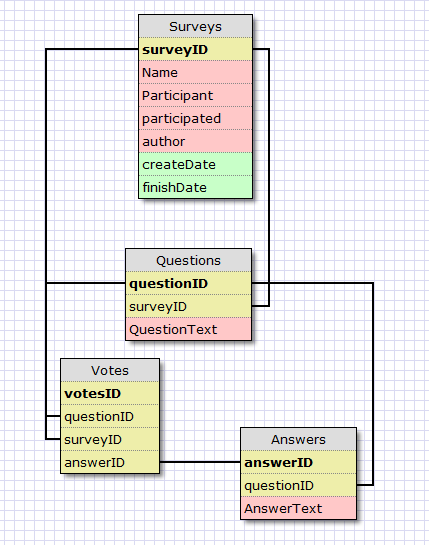 ich habe damit begonnen, mir ein kleines Umfrage-Tool unter ASP.NET (mit C#) zu schreiben. Die Umfragen sollen dabei datenbankgestützt erfolgen. Als DB-Server verwende ich den MS SQL-Server.