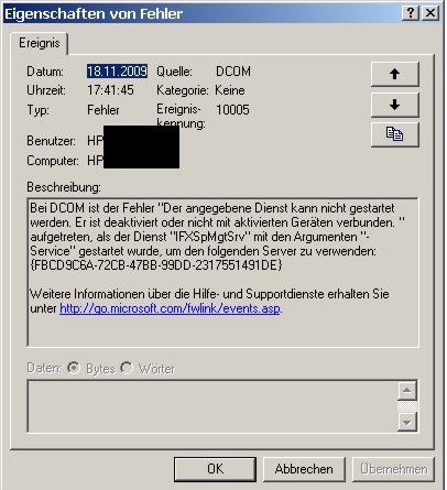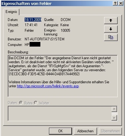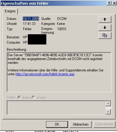 In der Ereignisanzeige finden sich dann angefügten Fehler.
