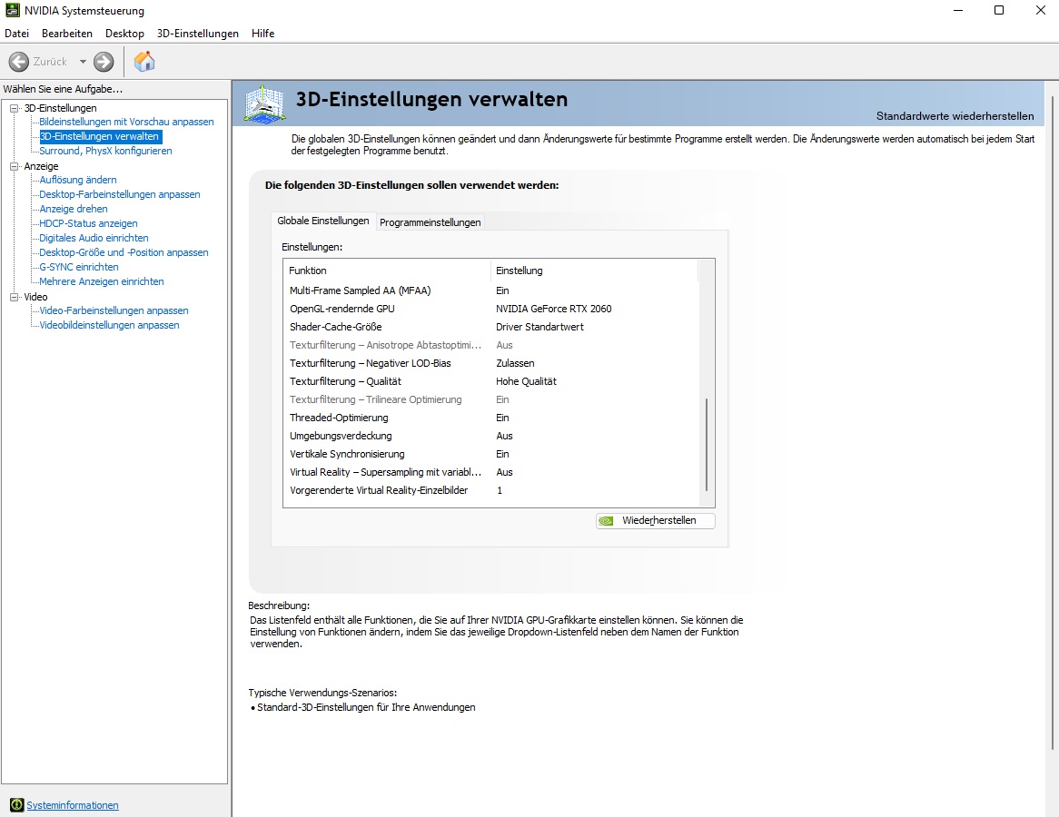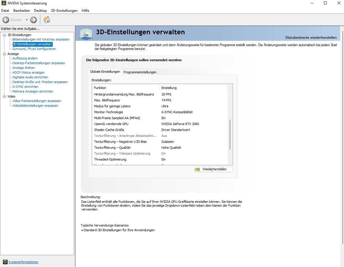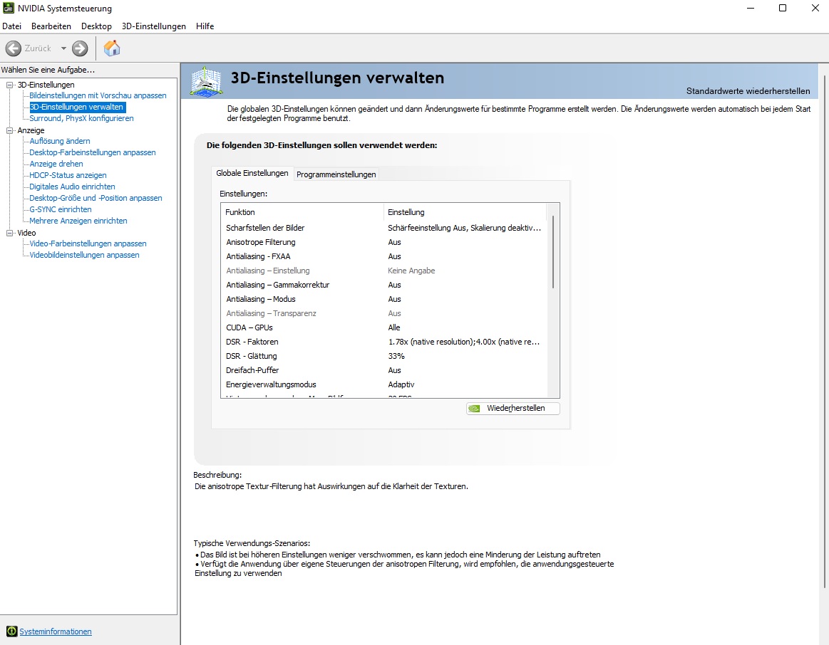 So sehen die optimierten Einstellungen bei NVidia dazu aus: