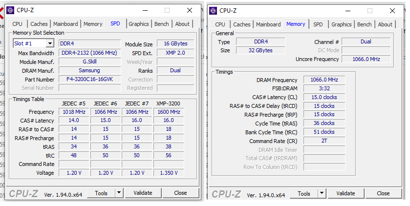 Mein Problem ist nun, trotz Auswahl des XMP-3200 Profils im Bios, wird mein Arbeitsspeicher nur als 1066 (2132) angezeigt.