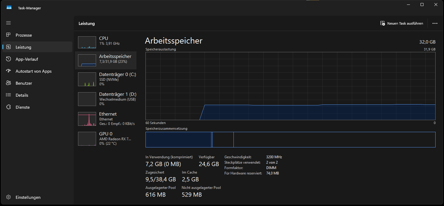Nach dem Ich die CPU dann im BIOS überprüft habe ist mir beim ersten Start von Win11 aufgefallen, dass meine Crucial DDR4 32 GB