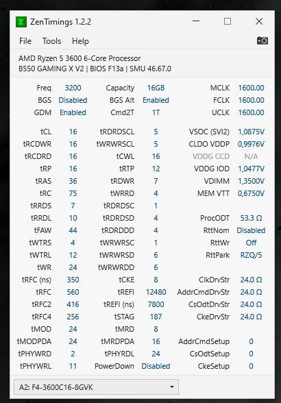 Ich hab meinen RAM gewechselt von DDR4-3200, CL16-18-18-36 auf DDR4-3600, CL16-16-16-36.
