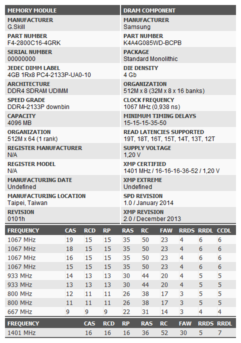 JEDEC DIMM Label = 8GB 2Rx8 PC4-2133P-UB0-10 (2133? das passt einfach nicht zum nächsten Eintrag)