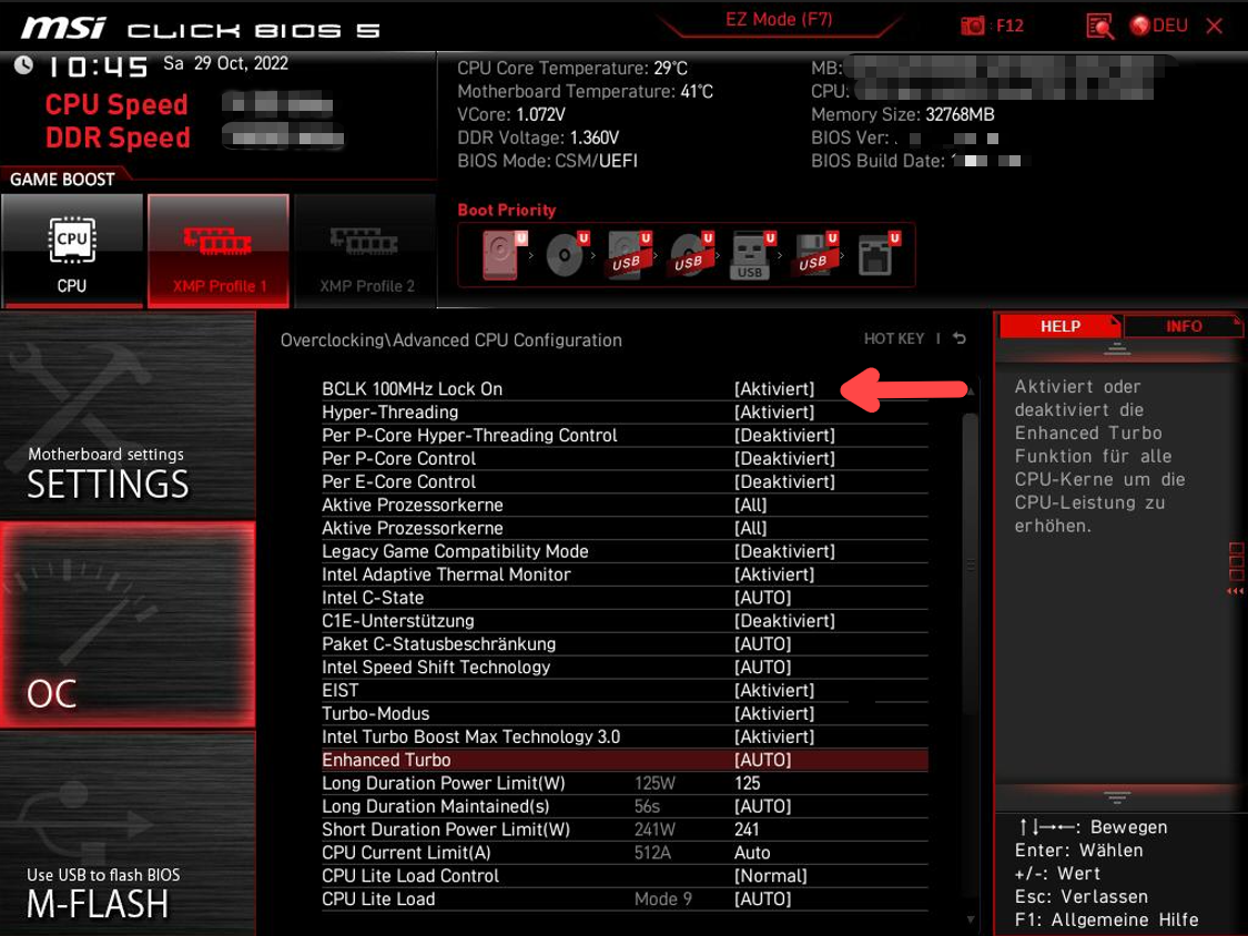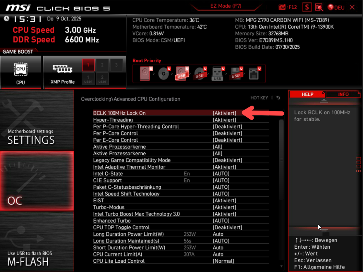 In meinem Fall muss ich dieses aber nicht, weil MSI dazu diese Option mit dazu stehen hat.