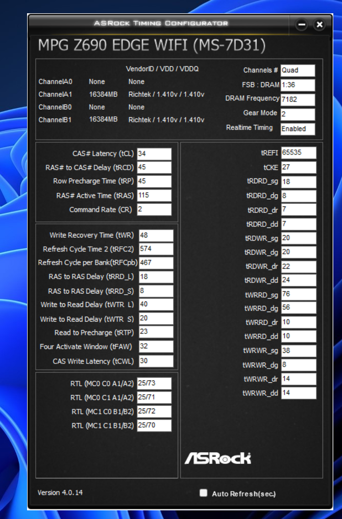 Willst du Leistung und Stabilität rauskitzeln, stelle den Arbeitsspeicher von 7200 auf 6400 runter und teste, wie weit du die Latenzen dann runter drehen kannst.