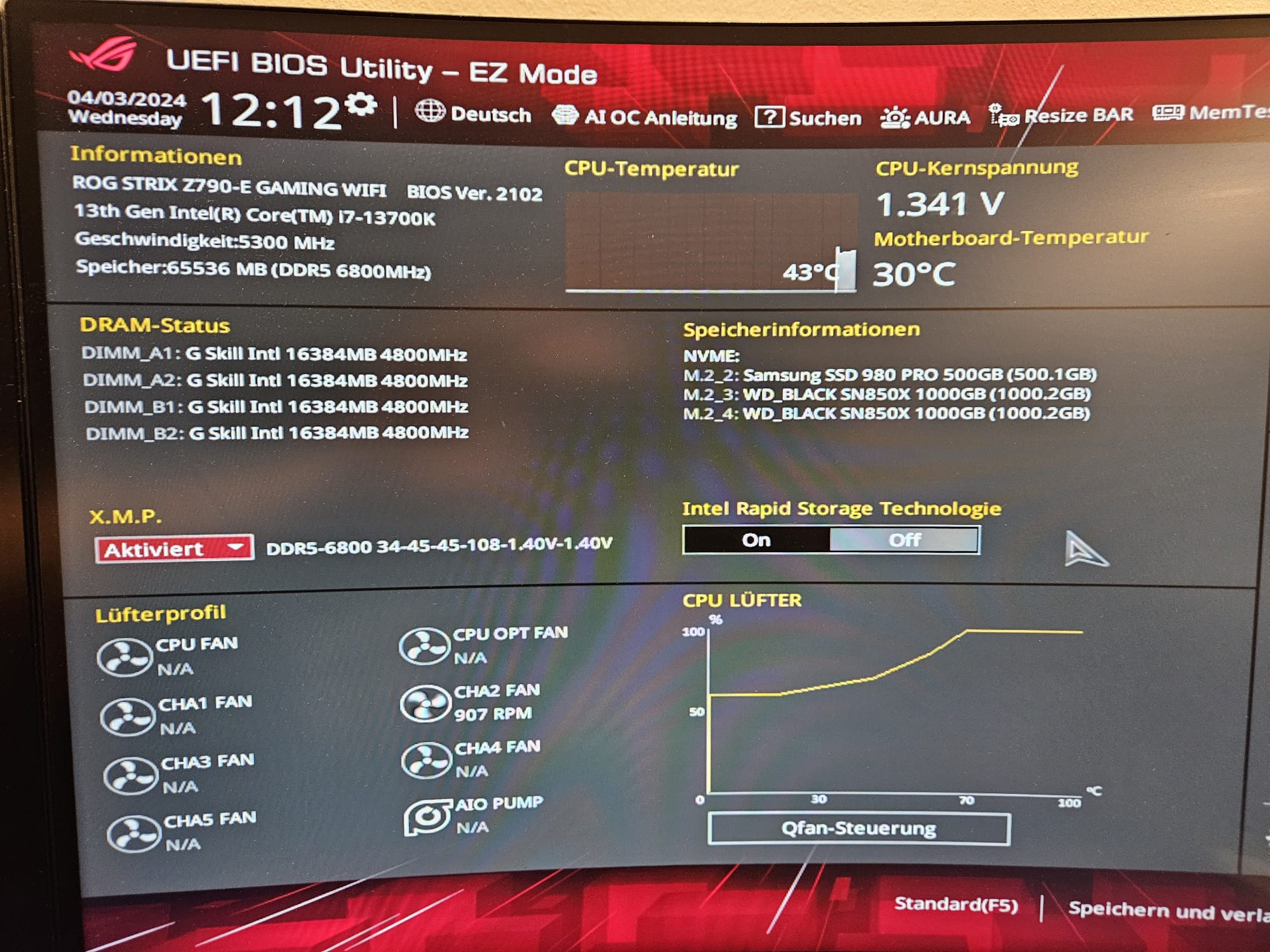 - Im Bios läuft XMP, XMP 1 und XMP 2 Profil ausprobiert, keine Änderung