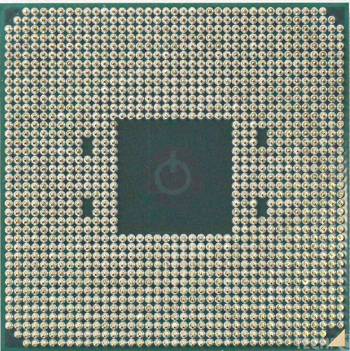 A lot has been said about the shape of the CPU lid and those cutouts are making room for capacitors, surface mounted capacitors, that would have been on the underside of the CPU in a PGA equivalent part but you need all the space you can get on the bottom of the chip so we moved things up top and made those cutouts and that allowed us to keep the same package size as AM4.